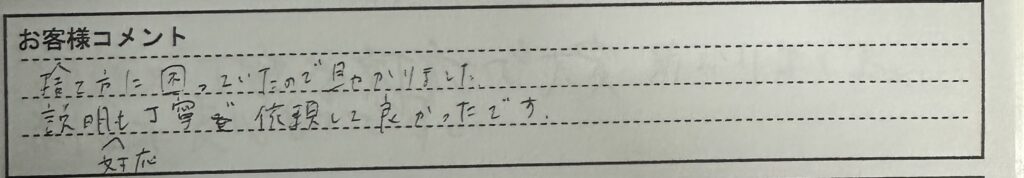 お客様より今回のクリーンワークスのお仕事ぶり、