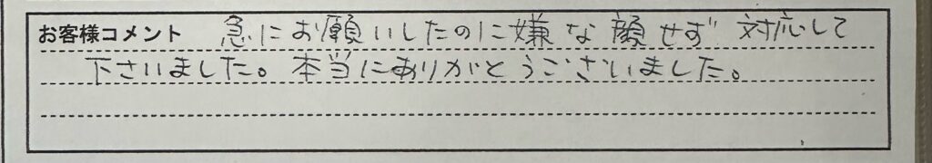 【急にお願いしたのに嫌な顔せずに対応してくださいました。本当にありがとうございました。】