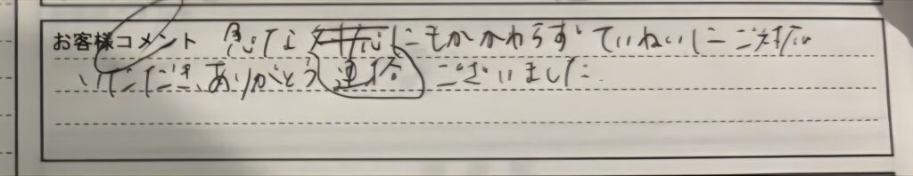 「急な連絡にも関わらずていねいに対応していただきありがとうございました。」